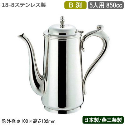 【コーヒーポット ステンレス 送料無料】SW 18-8ステンレス製 B渕 コーヒーポット 5人用 850cc【日本製/新潟県/燕三条/業務用/家庭用/ティーグッズ/コーヒーサーバー/ティーサービス用/おしゃれ/コーヒー/珈琲/お茶/ティーグッズ/レストラン/ホテル/飲食店/カフェ】