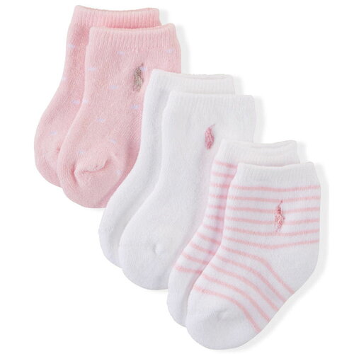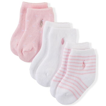 【バラ売り】Ralph Lauren(ラルフローレン) ガールズワンポイントベビーソックス(ボーダー/ドット/White)/靴下※3足組を1足ずつばらしての販売となります【0-6m/6-12m/18-24m】