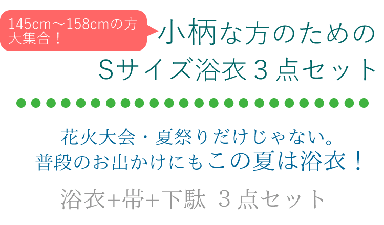 身長145cm〜158cmの方はこれ きもの京小町オリジナル浴衣 Sサイズ3点セット 少しでもマイサイズに近いサイズだと着付けも簡単 着崩れも軽減されます。